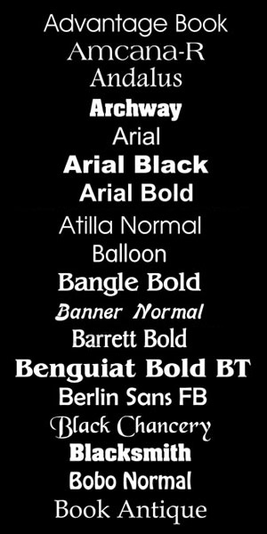 The choice of font changes the whole look of a sign. We have shown a good selection of fonts we often use on slate but there are thousands available.